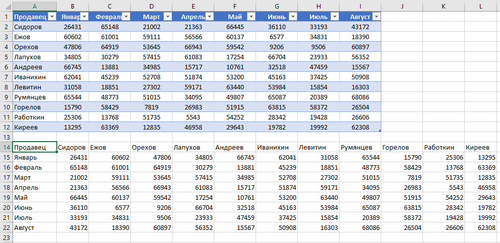 Таблица перевернется.