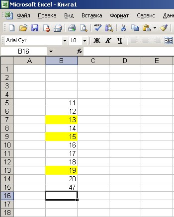 Также рассмотрим, как посчитать сумму в Excel более сложным способом. К примеру, нам нужно подсчитать значения ячеек, не стоящих одно под другим (подряд) в столбце. На изображении желтым цветом отмечены ячейки, значения которых необходимо суммировать.