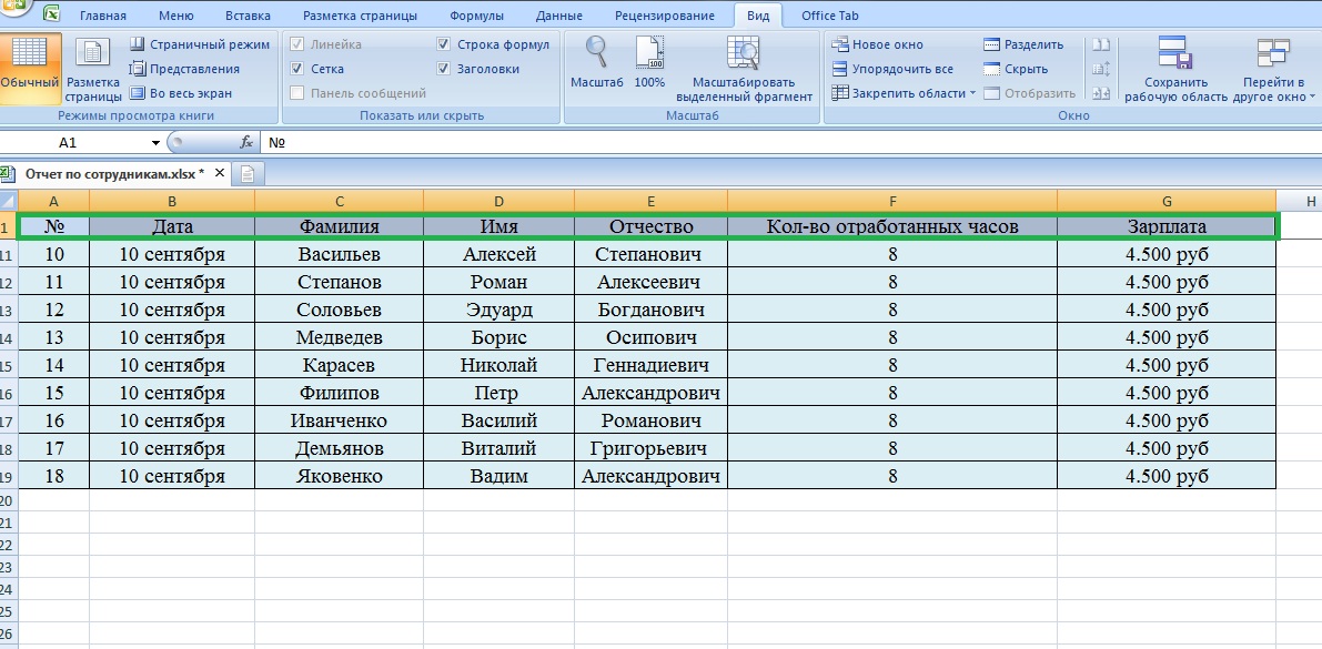 После этого «сложная шапка» всегда будет оставаться на месте, делая возможным пролистывание таблицы до самых нижних строк.