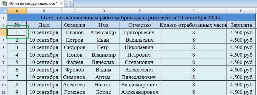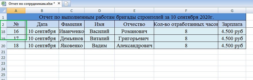Если в шапке таблицы не одна, а несколько строк, первый метод работать не будет. Для того чтобы закрепить такую шапку, необходимо выбрать курсором первую ячейку в столбце.